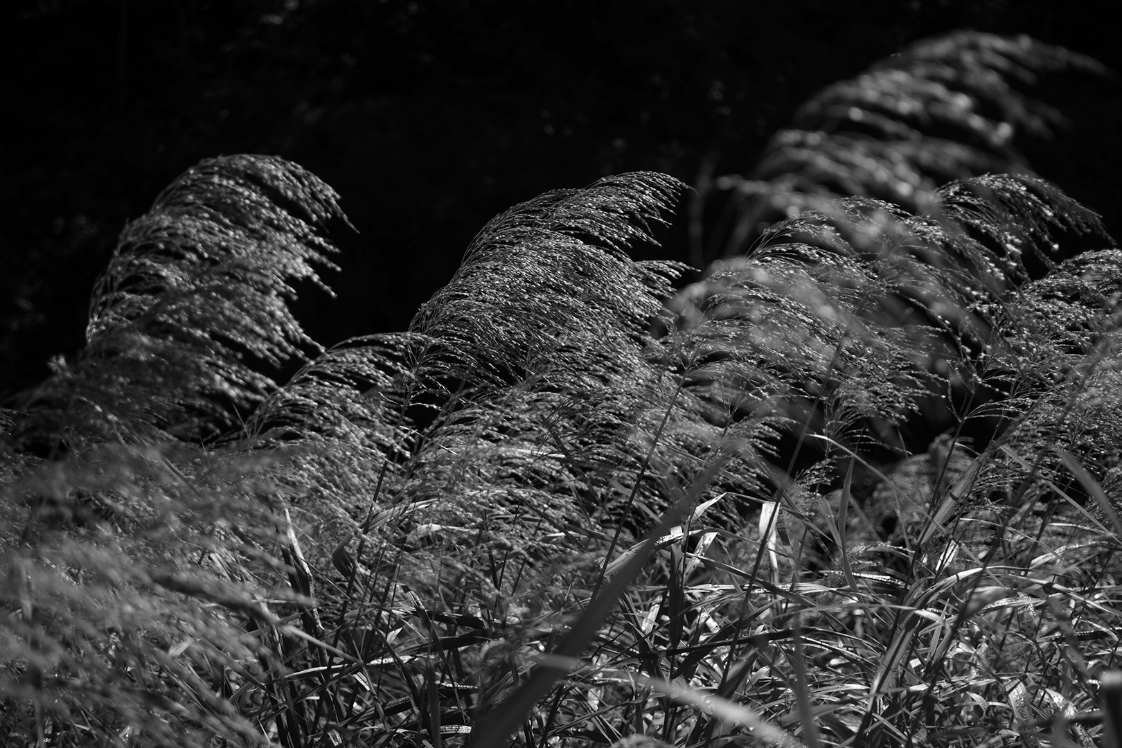ススキの重なりだけでなく光の印象も含めたアングル選びが自分のトーンを見つける手がかりになる
