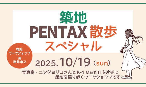 写真家・ニシダヨリコさんとPENTAX K-1 Mark IIを手に築地エリアを撮り歩く「築地 PENTAX K-1 Mark II 散歩スペシャル」を開催します。